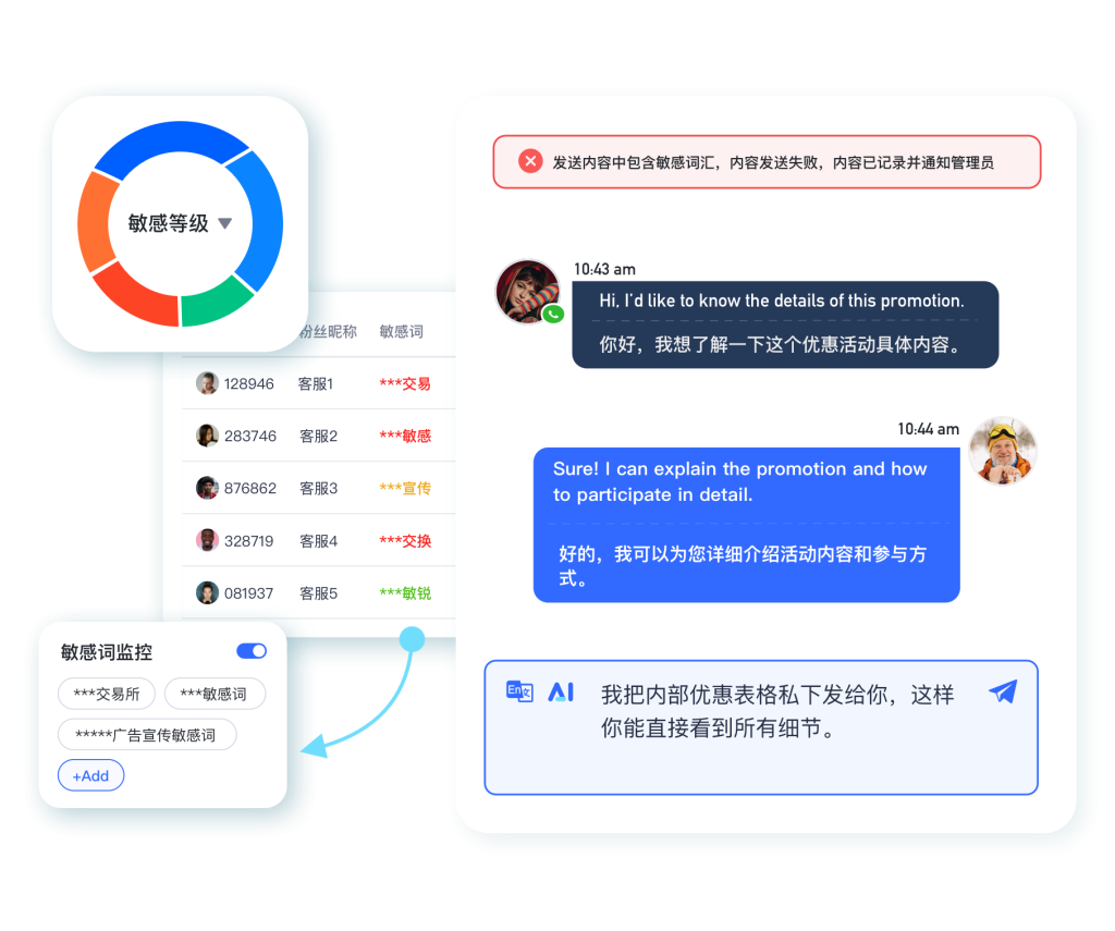 AI营销助手: 快捷话术、自动回复、智能营销闭环。